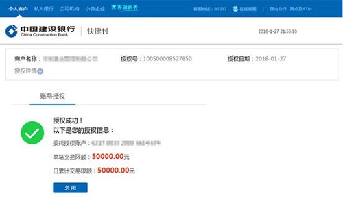 快捷付授权开通后,不能变更绑定的银行账号,如您指定新的银行账号,需先注销再重新绑定。异常状态的账户不能授权开通快捷付。