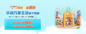 华润万象生活旗下商圈满2000元减166元,满300元减至高66元
